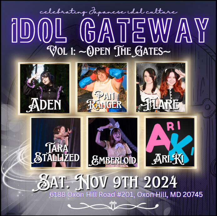 ADEN (middle) is the creator and a co-runner of IDOL GATEWAY, inspired by taiban style lives they frequented in Tokyo. They are in charge of the social media and performer relations. They are also staff for Tri-State Idol Union and Otakon Idolspace.